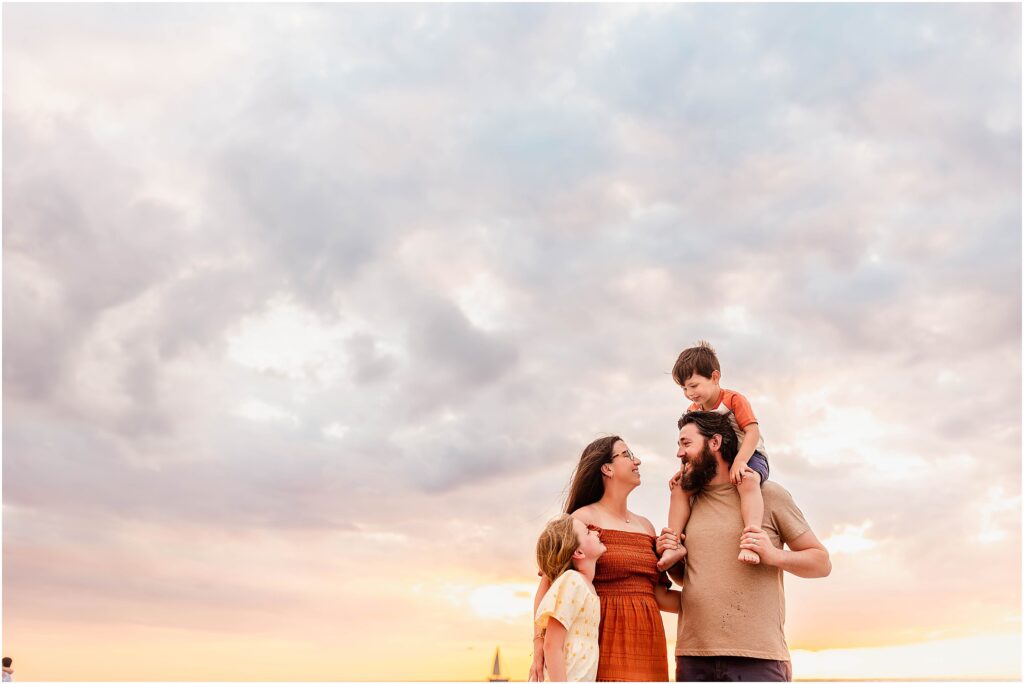 It’s my favorite season to be a family photographer in Clearwater Beach! Summa summa summa time! Ok, it’s not technically considered summer yet, but if you live here or have visited lately, it may as well be. And you know what that means? Rainy afternoons that leave cotton candy clouds in their wake. The most dramatic sunsets happen after the rain! This is why if you’ve booked with me, I don’t like to cancel due to rain until the last minute. Annoying, I know. But worth it? YES.